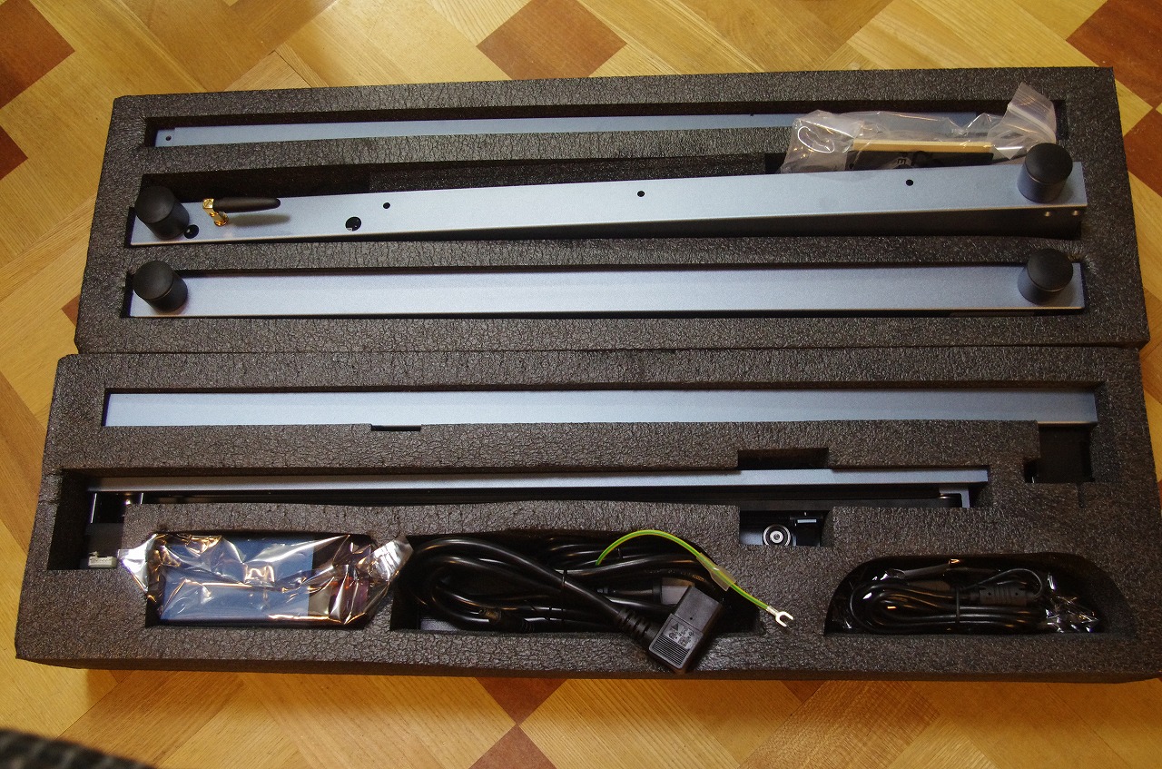 届いてみると、ずっしりとした引き抜き材にアルマイト仕上げ。やはり高級感がある。