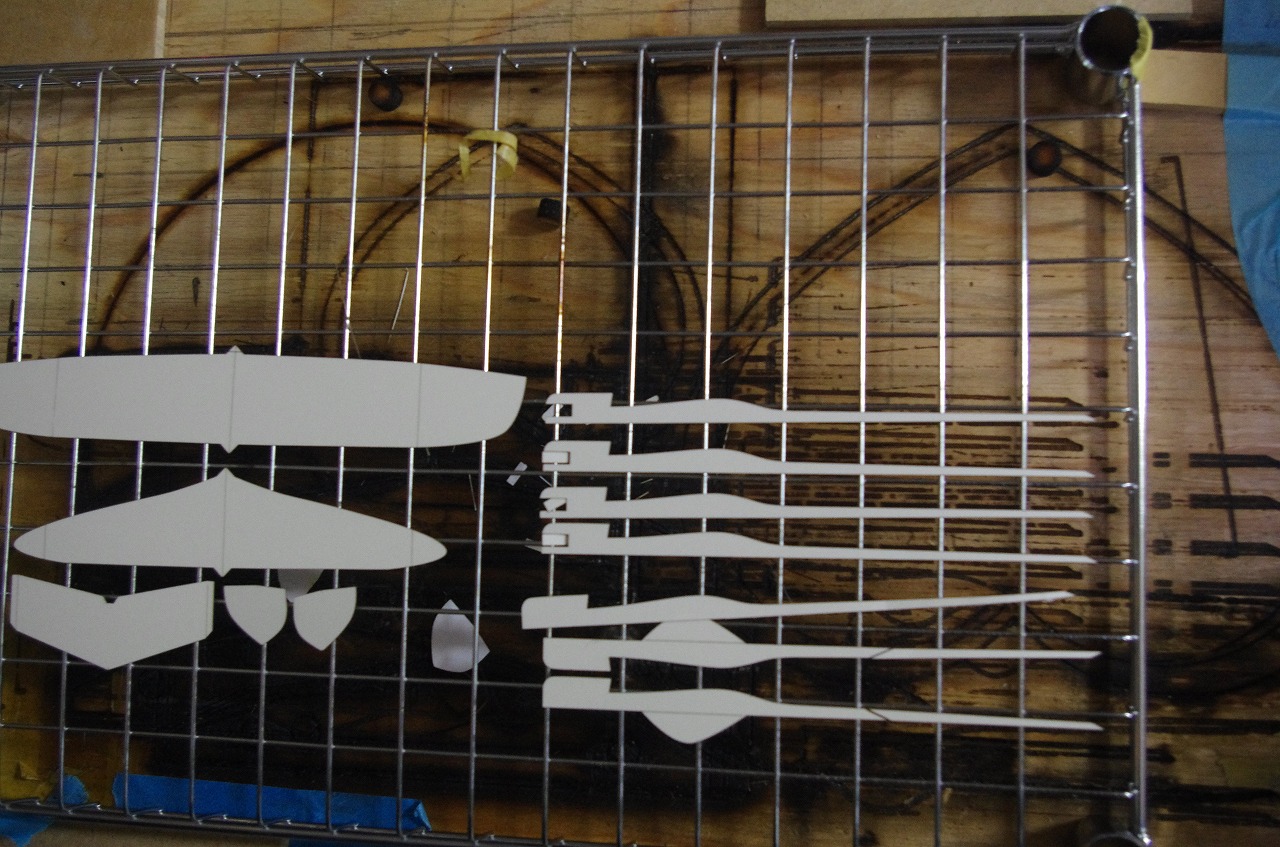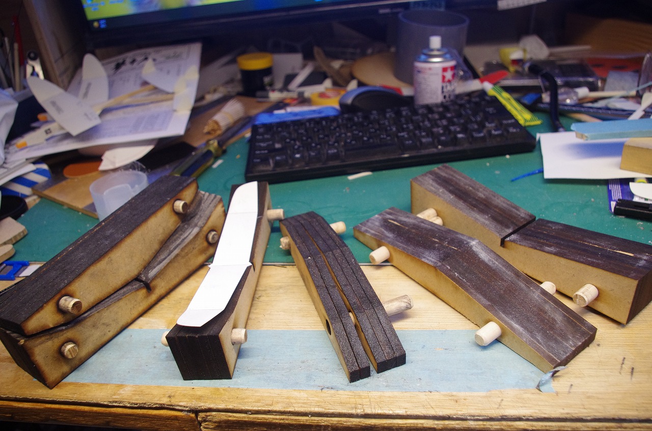 ダイソーのMDFもカットできるので主翼を磨くためのベッドを作るのも楽々。