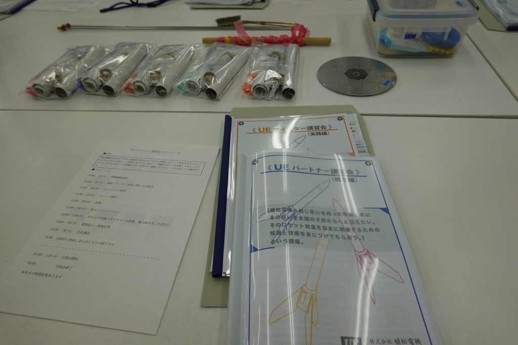 今回受講したのはモデルロケット教室で年間1万本以上打ち上げている植松電機が主催しているUEパートナーズ制度を利用するための「UEマイスターズ講習」。もちろん、日本モデルロケット協会の講師ライセンス程度の知識技能は前提とされている。