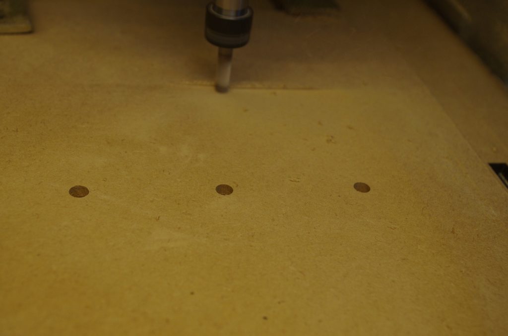 まずはフィンの型をMDFにCNCで彫り込む。上下対象にするために同じものを2枚。
