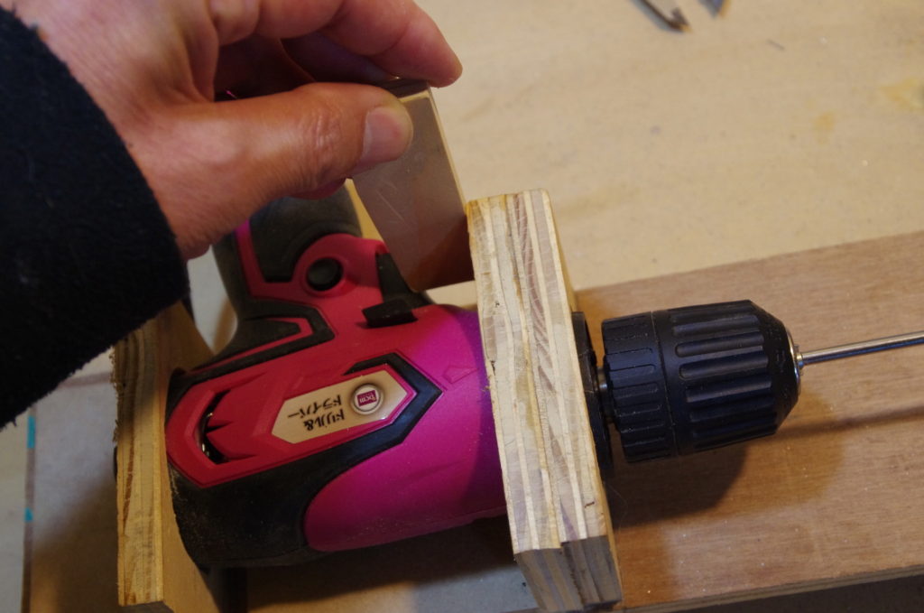 回転数の調整は鳥がのところに台形の木片を挟んで行う。