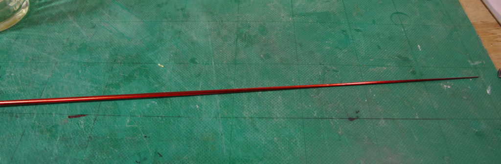 そこで、前回グラインダーで削ったマンドレルに赤の油性ペンで真っ赤に塗る。
