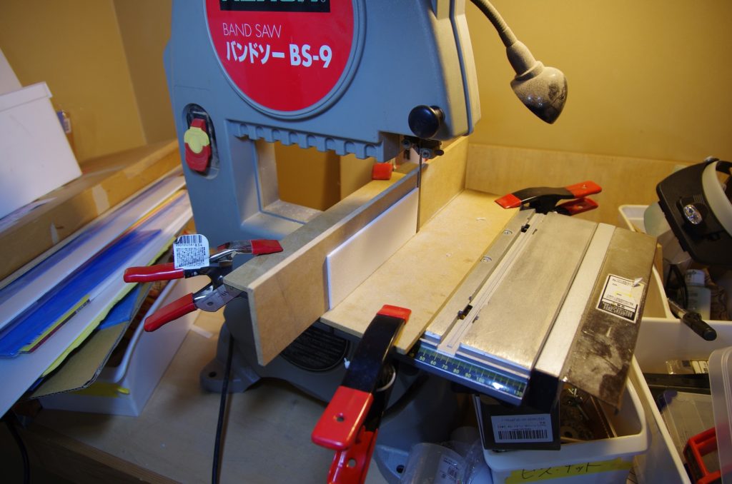デプロンは3㎜のものをバンドソーで薄く割る。