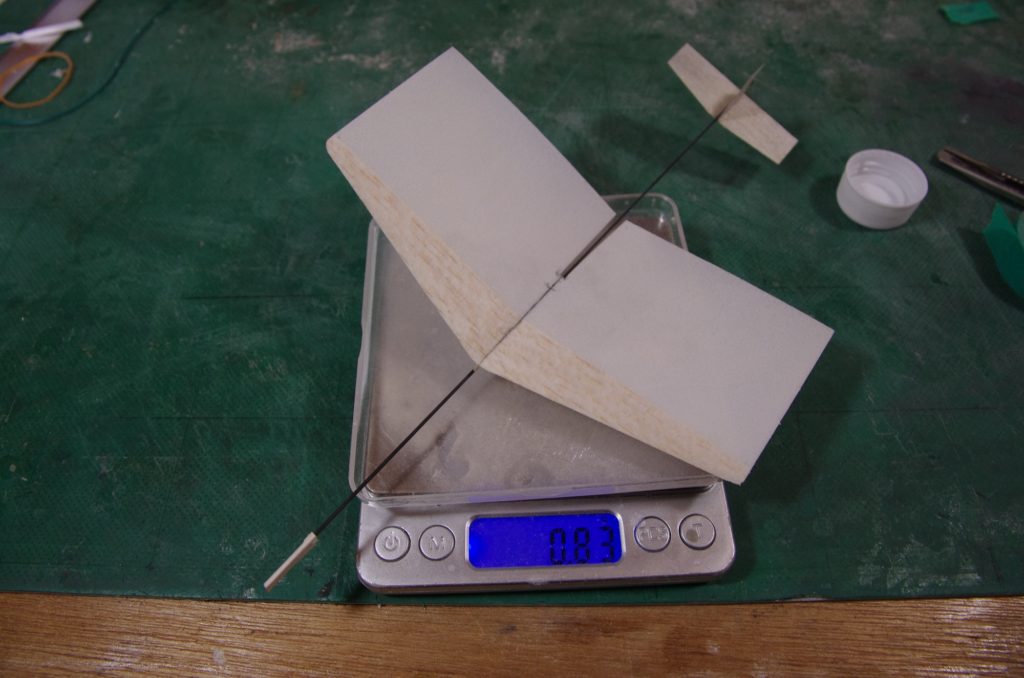 主翼面積が0.94dm2なので、翼面荷重0.88g/dm2位か。