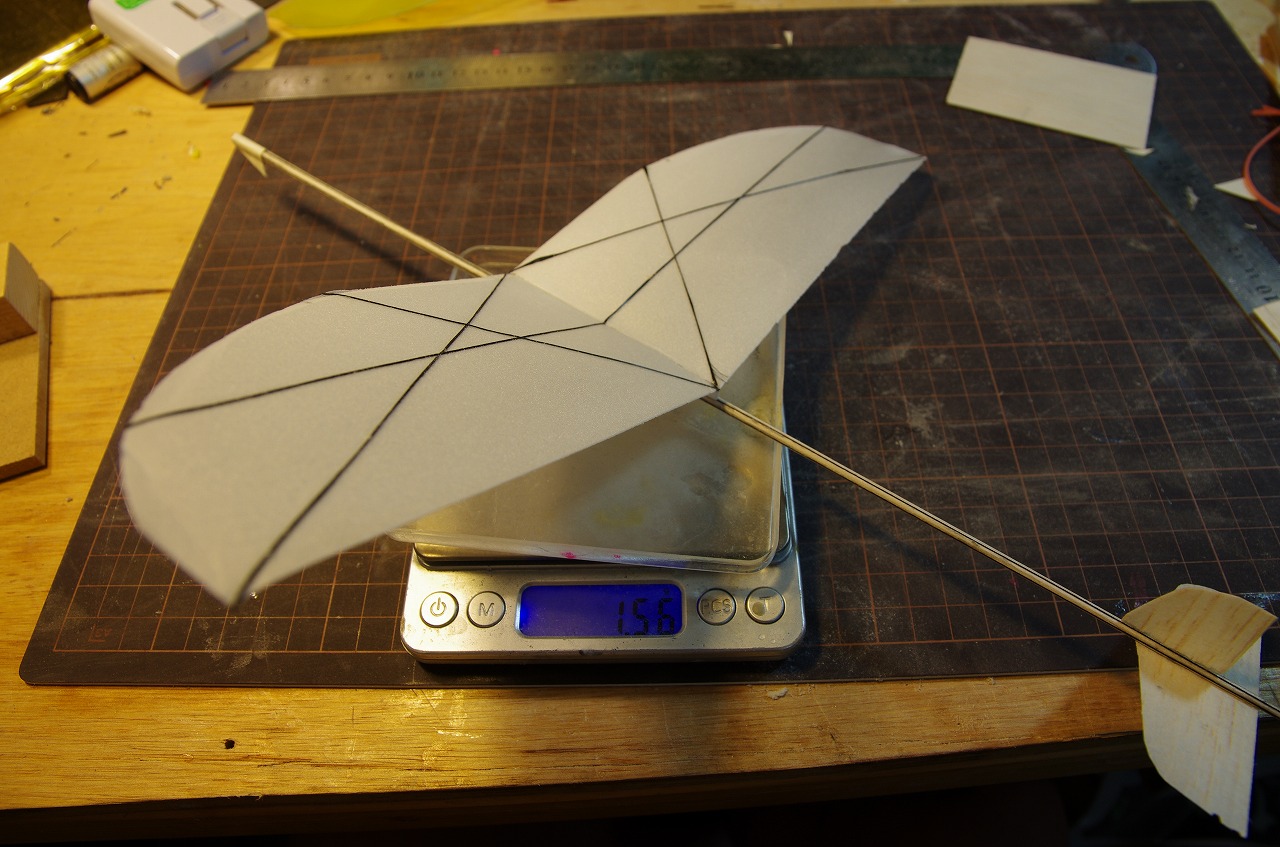 不器用なのでイマイチもっさりした翼だが、1gを切ることができた。