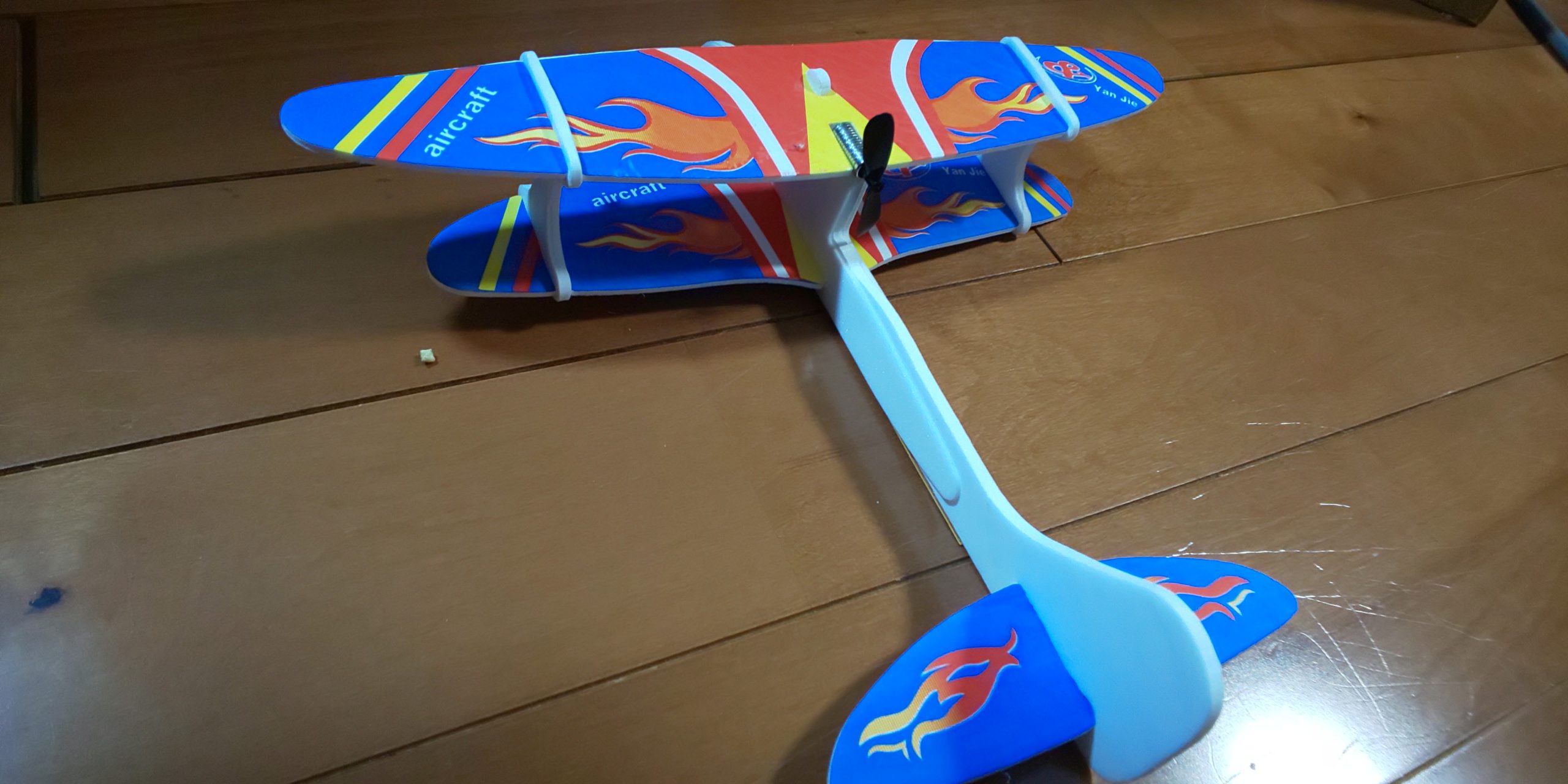 JAXAの坂下氏からコンデンサプレーンの動力セットを分けていただいた。自作のゴムランチグライダーを改造して取り付けてみるとこれがなかなか面白い。